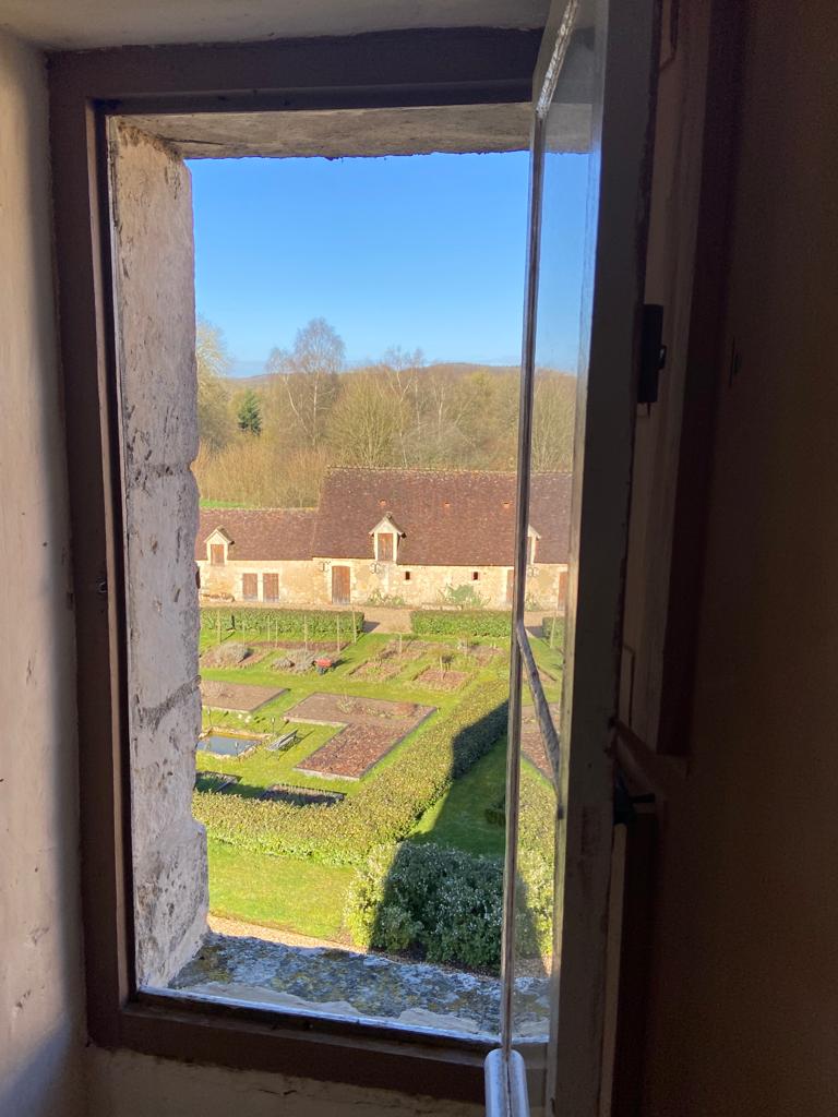 Une deuxième chambre (25m2). Un lit de 140 et un lit de 90. Une fenêtre coté manoir.