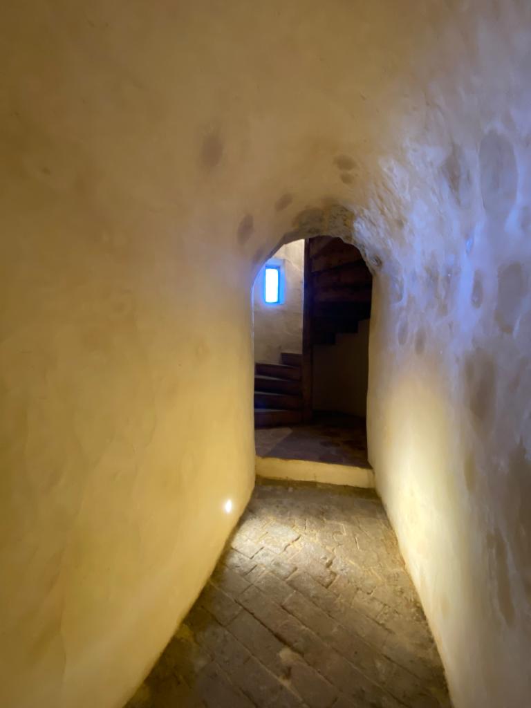 Le rez-de-chaussée, ouvre côté manoir. Il comporte une cuisine aménagée. Une salle de douche et des wc séparés. A l’arrière de ces pièces débute un exceptionnel passage sous terrain qui conduit à la tour d’escalier. Celle-ci dessert les autres niveaux.