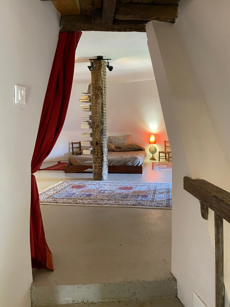 Au niveau 2 une deuxième chambre (25m2). Un lit de 140 et un lit de 90. Une fenêtre coté manoir.